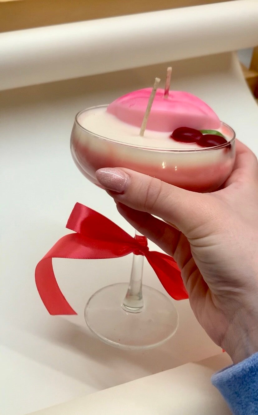 Je kan ervoor kiezen het cocktailglas in te pakken als een cadeautje. Wij doen dit met micapapier, linten en stickers.