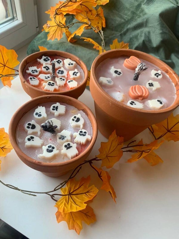 Breng sfeer en comfort naar jouw tuin, balkon of terras met onze handgemaakte Halloween buitenkaarsen. Deze vrolijke kaarsen zijn gemaakt van gerecycleerde wax, versierd met kleurrijke spookjes en zijn een echte blikvanger in elke buitenruimte.